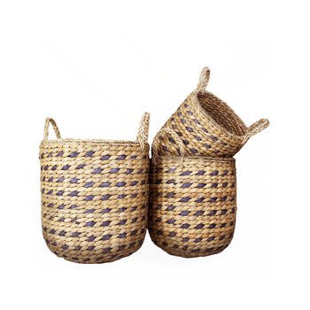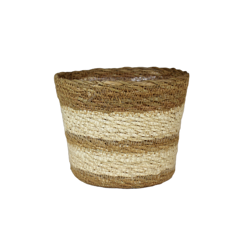 Cesta de flores tejida de yute y algas marinas redondas Cesta de paja de arroz tejida a mano con revestimiento de plástico Maceta biodegradable